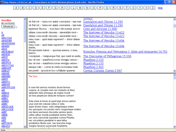 An electronic reference work to all devices of language by which persons are referenced in the Metamorphoses of Ovid; a series of indexes allow the user to analyse persons by how they are named and to discover and trace interconnections among them and therefore among the stories in which they appear.