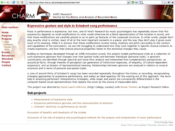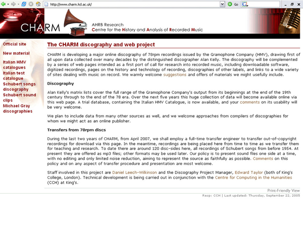 Traditionally, music has been studied as a text reproduced in performance - almost as if it were an obscure kind of literature. By placing performance at the centre of musicology - by promoting a musicology based on recordings and not just scores - CHARM aims to reduce the gulf between musicology and the listener. CHARM addresses three fundamental problems: