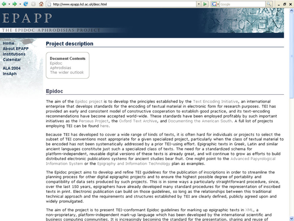 One of the main aims is to develop and apply tools for presenting ancient Greek and Latin inscriptions on the Internet; another is to publish some 1,000 inscribed texts from the ancient city of Aphrodisias in modern Turkey.