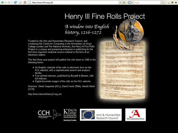 There is a fine roll for each of Henry III's fifty-six regnal years. Recording offers of money to the king for a multiplicity of concessions and favours, they are of the first importance for the study of political, governmental, legal, social, and economic history. The Fine Rolls of Henry III from 1216 down to 1248 are being published in both print and elecronic form, including access to digital facsimiles of the rolls