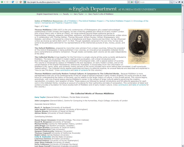| Professor Gary Taylor | General Editor | Florida State University | Department of English |